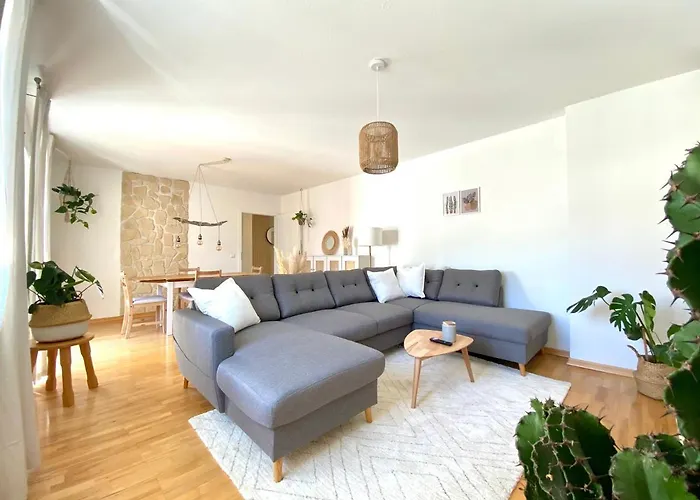A teniszpályát, napozó dekket és fodrászatot magába foglaló Best Butler Boho Boutique City Apartment Netflix & Dazn apartman a St. Mang Apátság területétől 250 méterre kínál szállást. Ez a Füssen városában található szálláshely egy rövid sétára van a Staatsgalerie im Hohen Schloss galéria területétől, ahol teljesen felszerelt konyhát kínál hűtővel, sütővel és konyhai edényekkel, valamint 1 fürdőszobát.